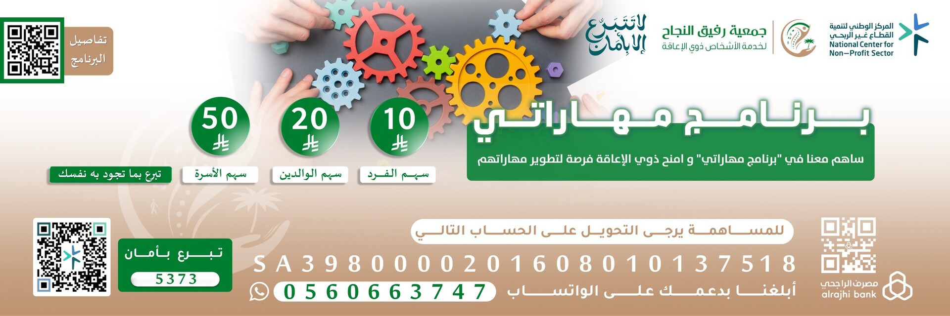 برنامج تأهيلي وتمكيني يهدف إلى صقل المهارات الحياتية والمهنية لذوي الإعاقة في منطقة مكة المكرمة عبر تدريب عملي وتفاعلي يدمج الأسرة، لتعزيز استقلاليتهم ودمجهم في المجتمع.